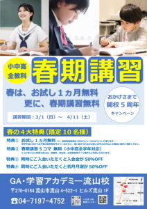 さて、当教室では新年度に向けて塾をお探しの方に向けて1か月間無料のキャンペーンを実施致します。